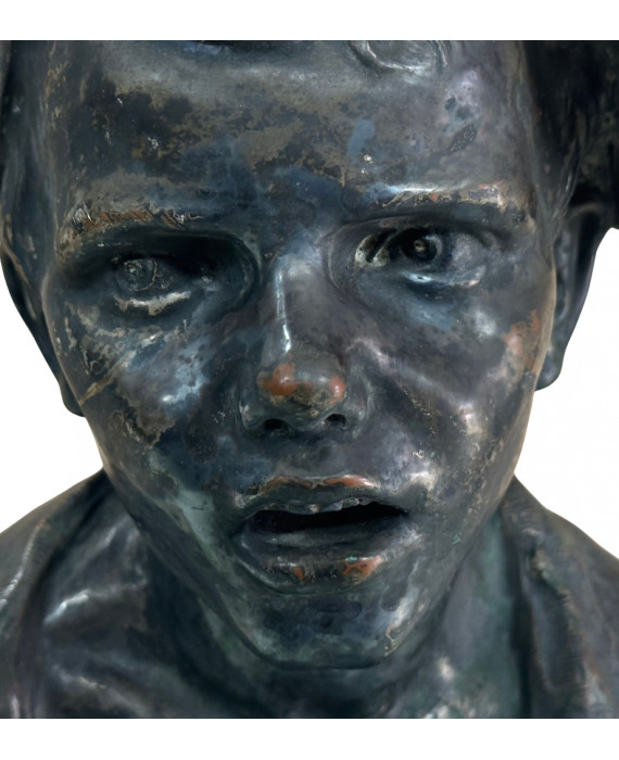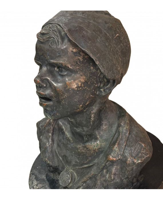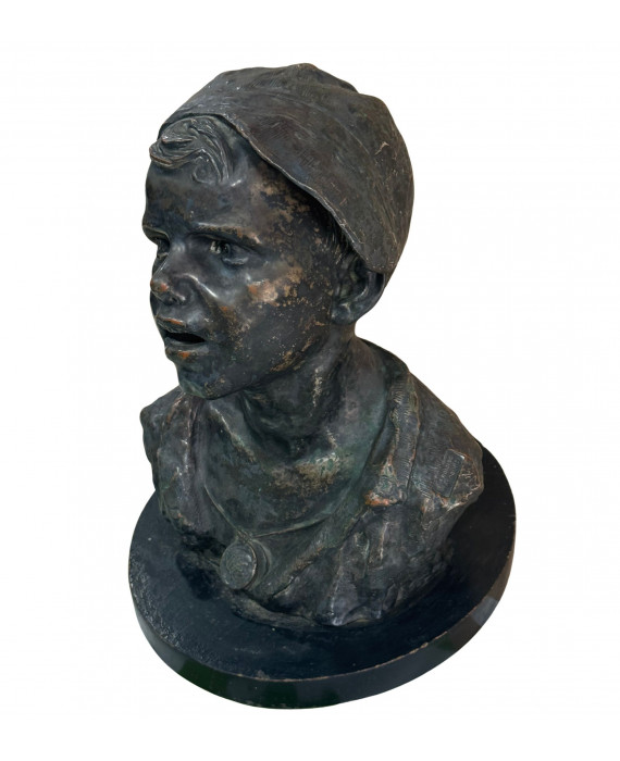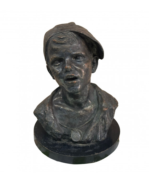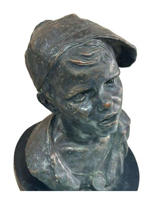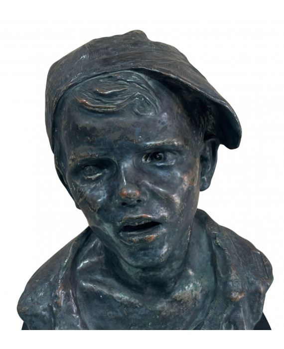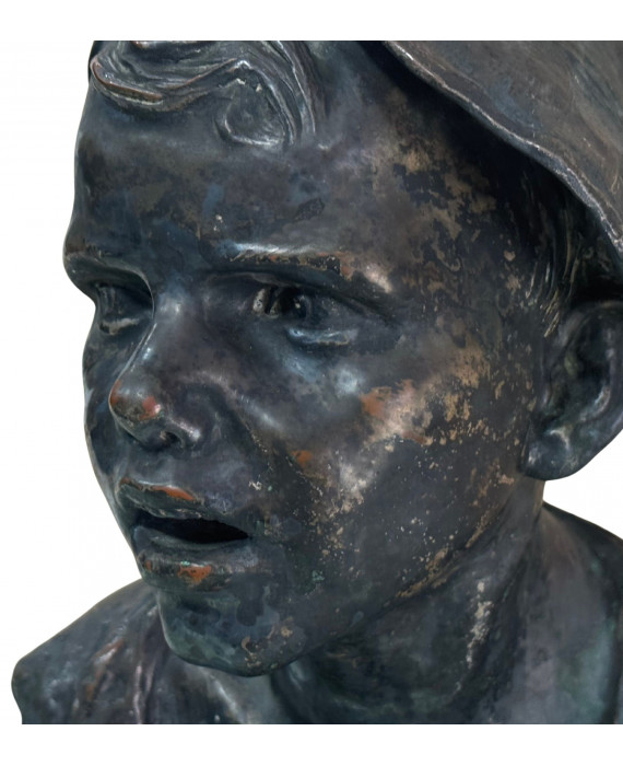 Scultura in Terracotta, raffigurante Scugnizzo napoletano. Dimensioni: h35x25x30 cm. Firmato sul retro da artista non identificato. In buone condizioni.